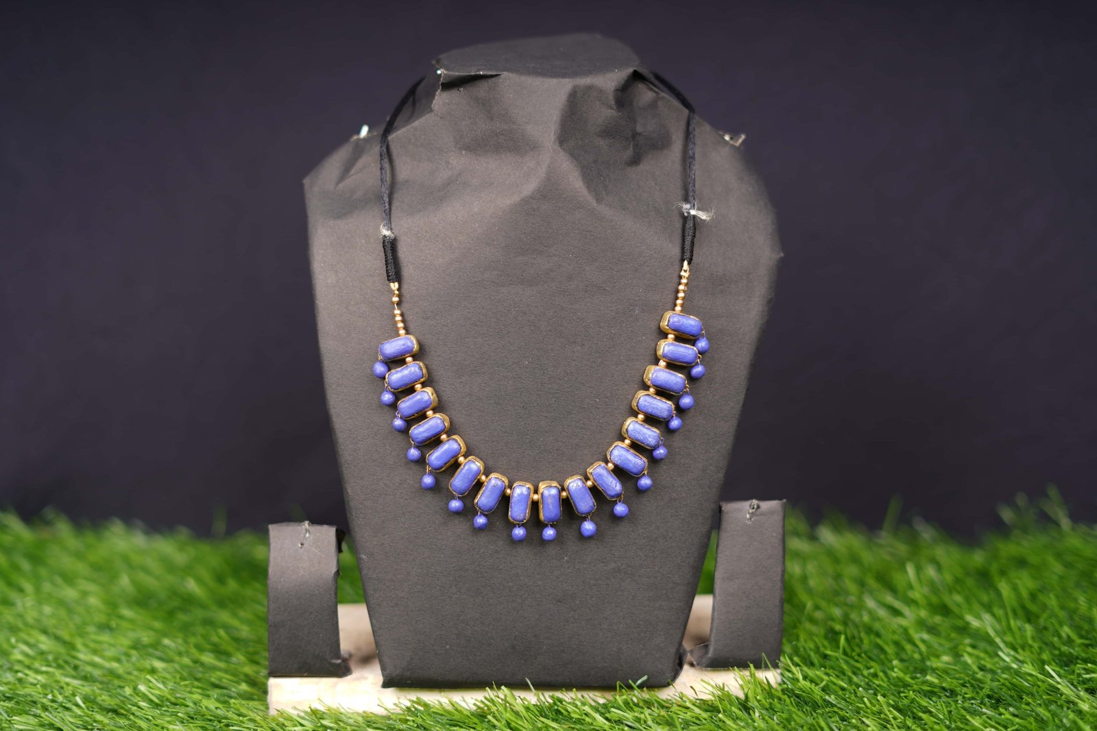 Delicate purple drop beads add movement and grace, making the necklace a standout accessory for festive events, weddings, cultural functions, and special occasions. Made using natural terracotta, it remains lightweight, skin-friendly, and stylish—crafted by skilled artisans with attention to detail.